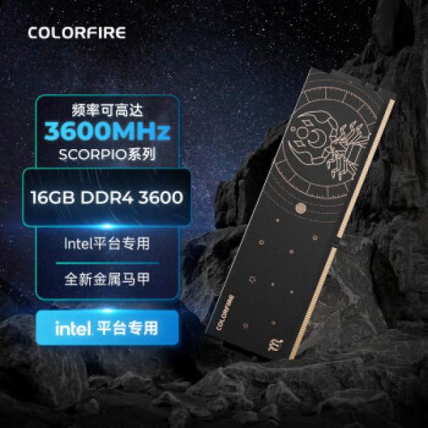 COLORFIRE(七彩虹) 16GB DDR4 3600 台式机内存条 马甲条 天蝎座 Intel专用 C18【J】
