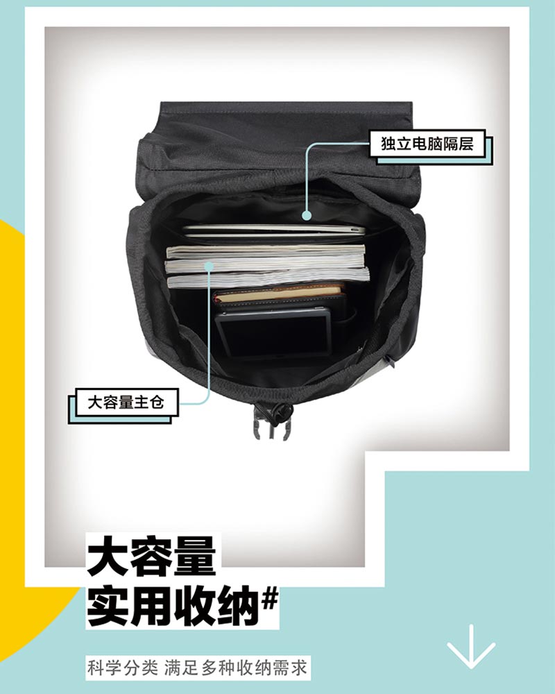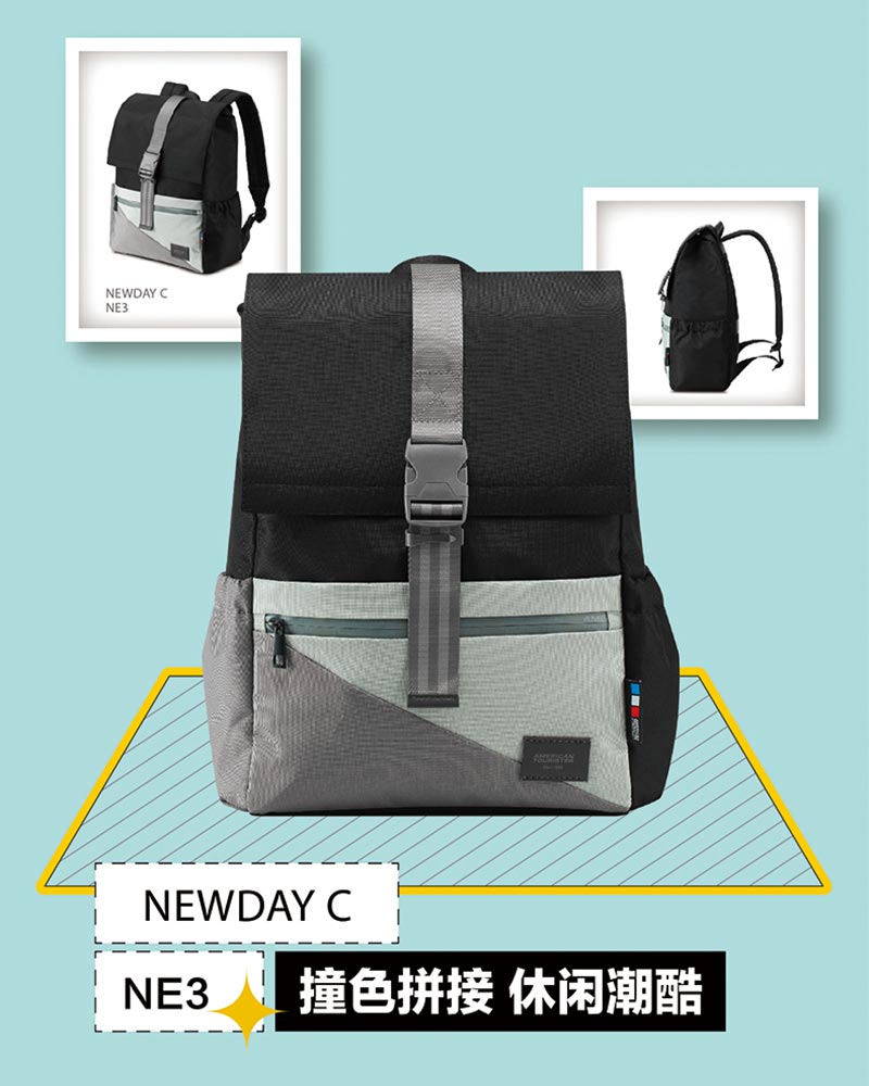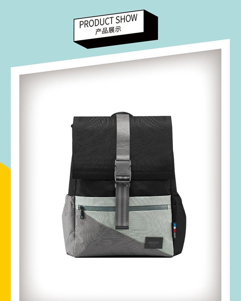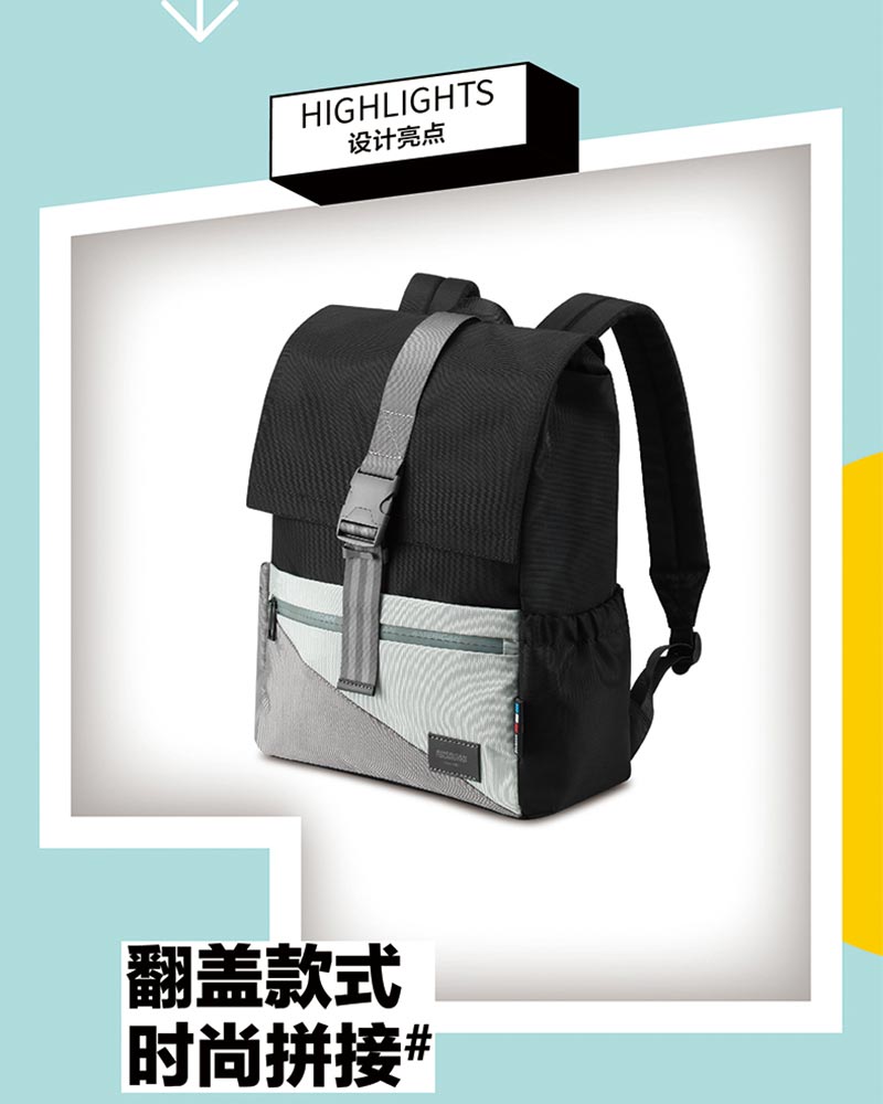1、翻盖款式,撞色拼接,可休闲可潮酷